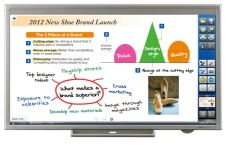 Sharp postarał się o dostarczenie odpowiedniego oprogramowania dzięki, któremu możemy wygodnie nanosić na ekran własne notatki czy dopiski. Zanotowany tekst możemy następnie zapisać w jednym z kilku popularnych formatów (SWS, PDF, BMP, JPEG, PNG). Jeżeli zaś jesteśmy posiadaczami urządzeń wielofunkcyjnych Sharp to nasze bazgroły możemy wysłać do druku bezpośrednio na tego typu sprzęt. Łączność odbywa się również w drugą stronę – zeskanowane dokumenty możemy od razu wyświetlić na Sharp PN-L802B.