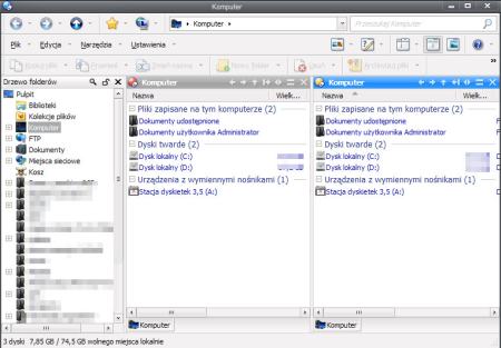 Od teraz wchodząc na Mój komputer pojawi się zmienione okno. Directory Opus integruje się z Eksploratorem Windows zmieniając znacznie jego domyślny wygląd.