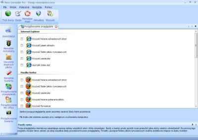 Ten komponent pozwala na wyczyszczenie historii odwiedzanych stron, paska adresów, plików tymczasowych, ciasteczek , historii pobieranych plików, formularzy oraz uwierzytelnione sesje z naszej przeglądarki. Należy wybrać które komponenty mają zostać usunięte. Revo obsługuje wszystkie najpopularniejsze przeglądarki.